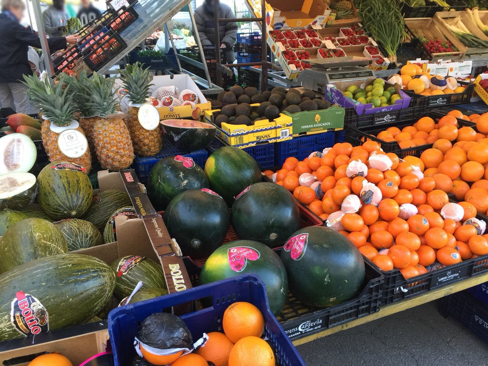 Disponemos de una gran variedad de productos dentro de los campos de fruta, verdura y hortalizas, todo de temporada y de primera calidad, también dentro de la fruta llevamos fruta tropical. Siempre intentamos estar al alcance del bolsillo del cliente con más de un tipo de categoría y marcas de ciertos productos para que nuestra particular manera de ser es contentar a todo tipo de cliente y poder llegar a todas las casas. Siempre intentamos presentar el producto el máximo de bien situado y visible sobre nuestros mostradores de aluminio con ayuda de cajas de un techo para que el material esté perfectamente visible y al alcance de la mano de nuestros clientes.